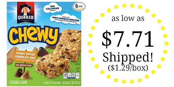 Quaker Peanut Butter Chocolate Chip Chewy Granola Bars Pack of 6 as low as $7.71 Shipped! ($1.29/box) March 18, 2017view the post