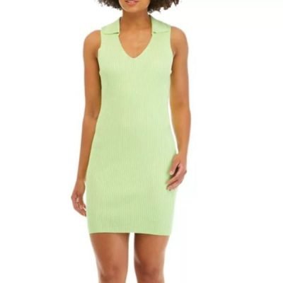 Juniors Sleeveless Collared Rib Sweater Dress