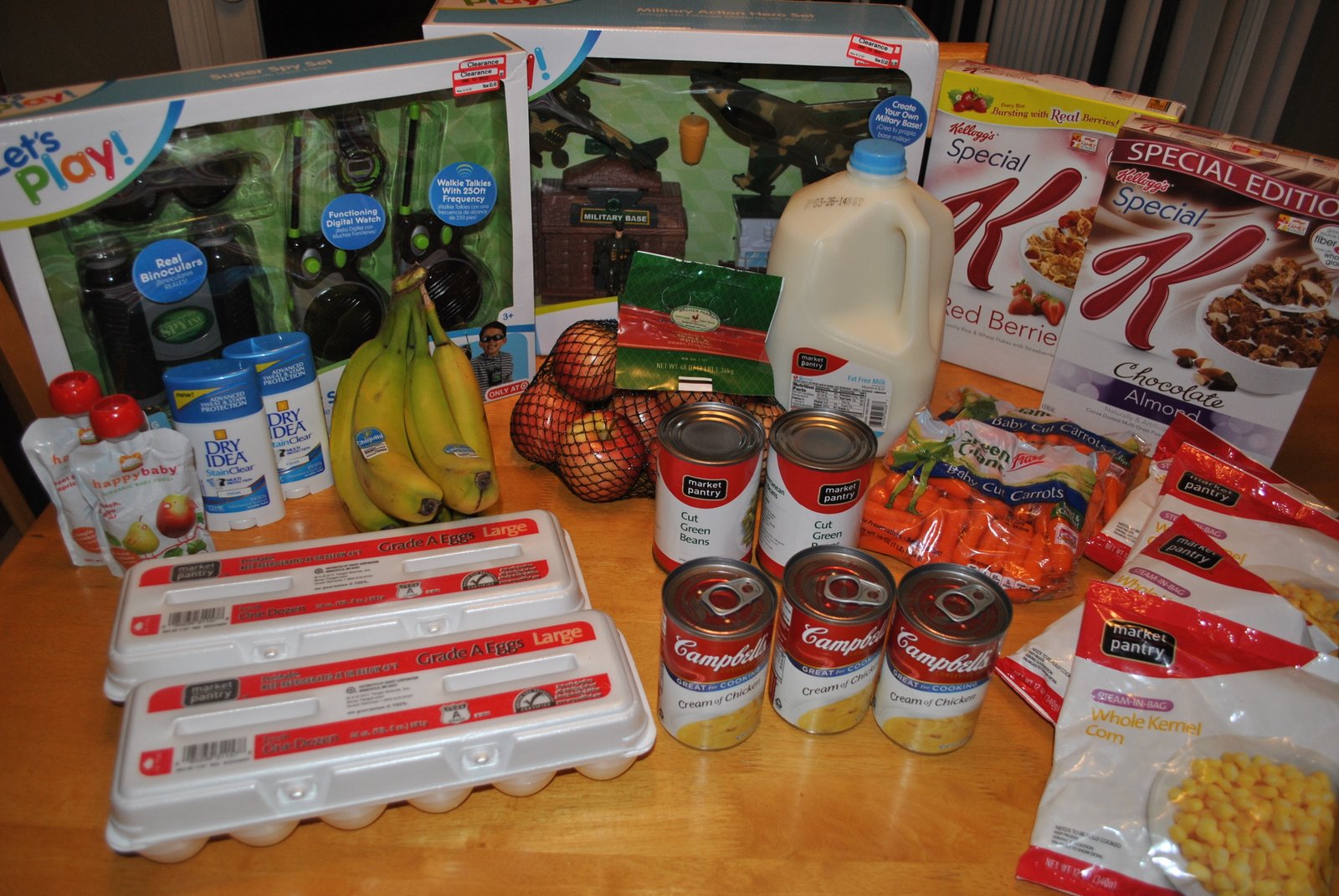 You can also see two toys that were on clearance that I picked up. I didn’t include those in my totals, but they were a great deal – one of them was $3.60 and the other was $5.40. My oldest son is going to LOVE the spy set! Always keep an eye out for clearance deals on endcaps and throughout the store.